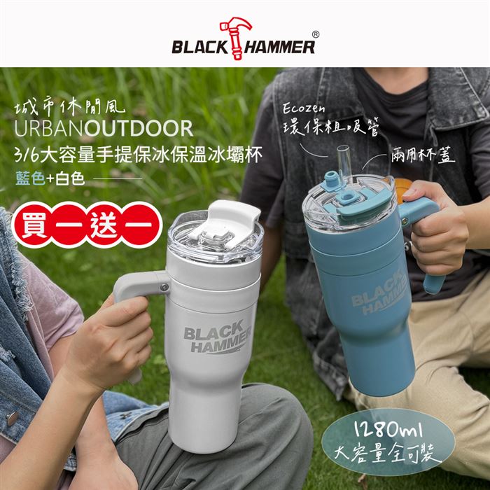 BLACK HAMMER 316不鏽鋼保冰保溫冰壩杯1280ml(白+藍)寬口設計清洗方便原價2,560特價$790