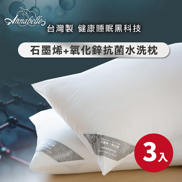 【3入組】台灣製石墨烯+氧化鋅抗菌水洗枕平均一件$259原價$3,680特價$777