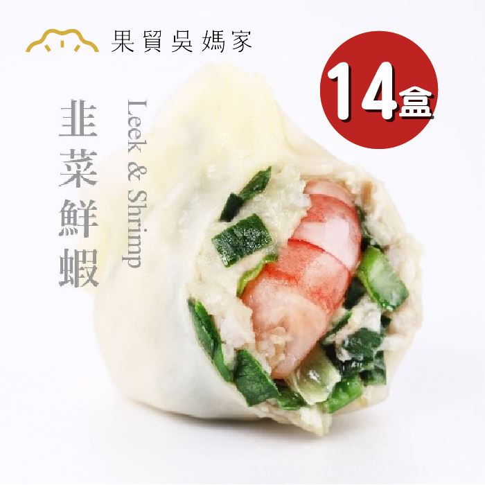 韭菜鮮蝦水餃14盒(24顆/盒)7/1-7/31加贈7%點數原價$5,800 特價$5,040