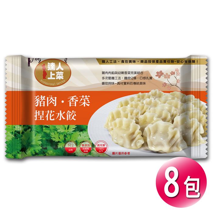 (箱購)豬肉香菜捏花水餃572g(8包)嚼勁夠味.豐富享受原價$1,280特價$920