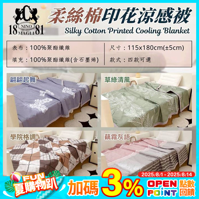 柔絲棉印花涼被(共4色)智慧調溫超涼感原價$499特價$299