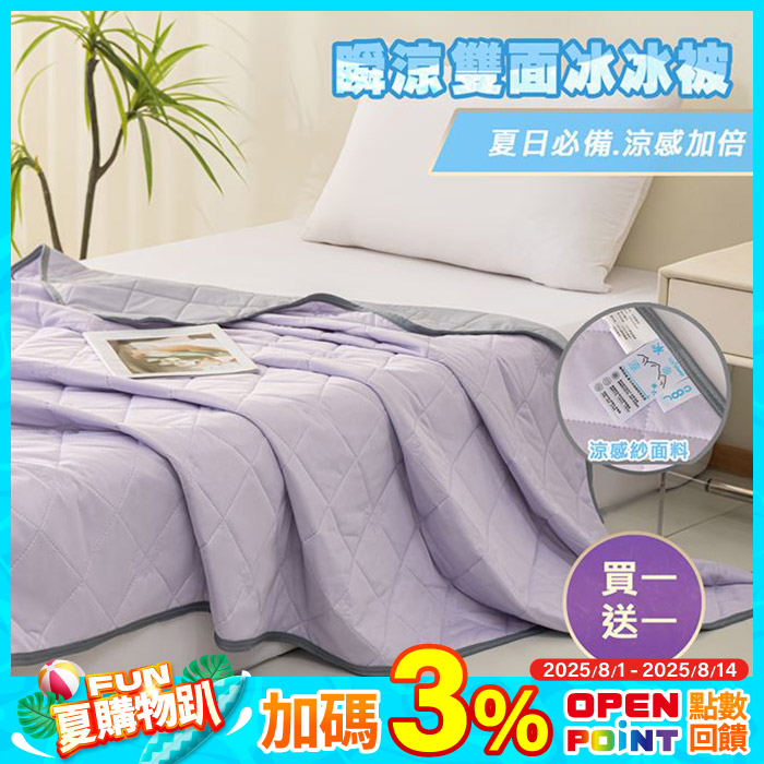 買1送1 Cool-S瞬涼輕柔雙面冰冰被(共5色)平均一件$344原價$1180特價$688