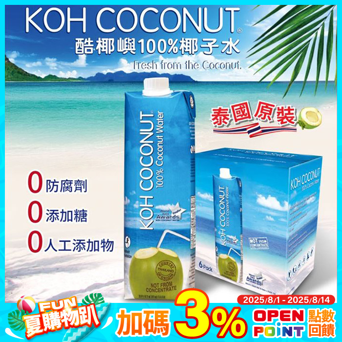 100%椰子水1Lx6入★限時優惠★天然運動補給飲料原價$570特價$499