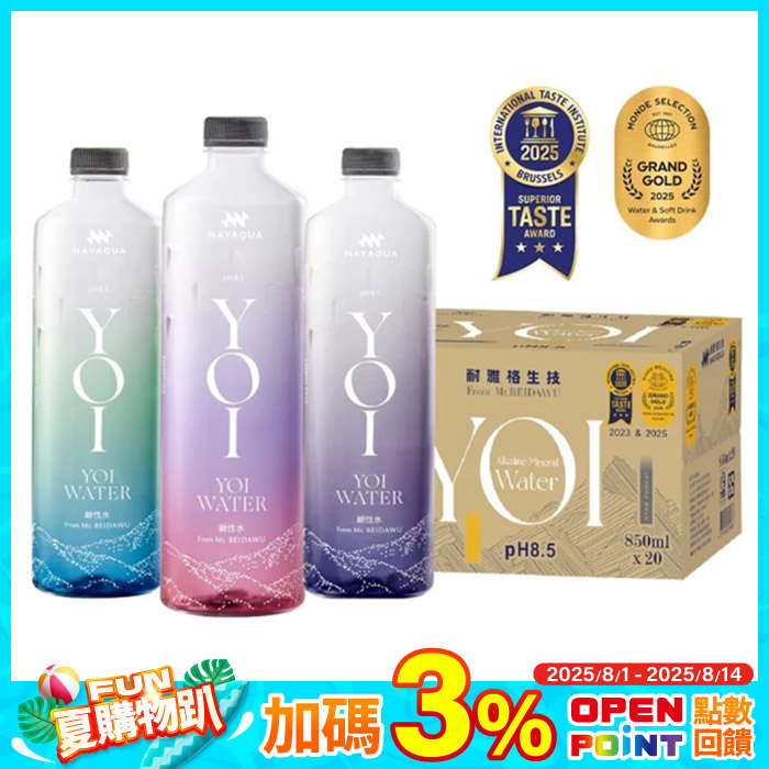 YOI鹼性水850mlx20入/箱好入喉的純淨滋味原價$600特價$499