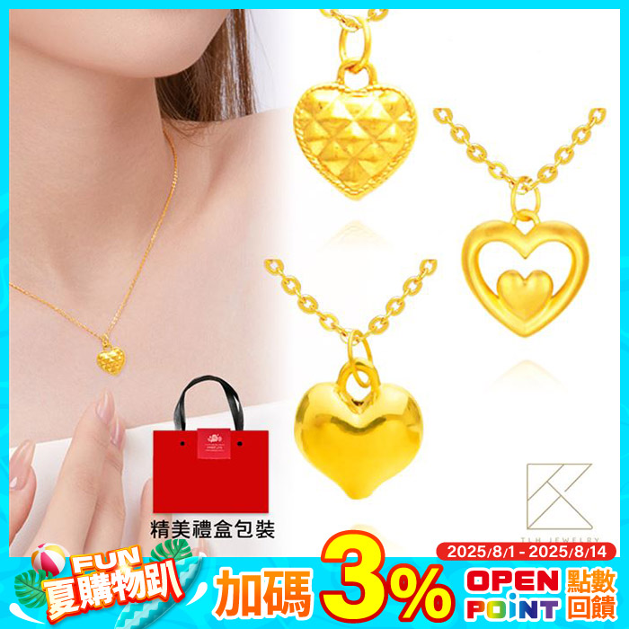 黃金墜項鍊禮盒 純金999多選 心動時刻(七夕情人節 生日)簡約雋永 永恆愛意原價$4200特價$1999
