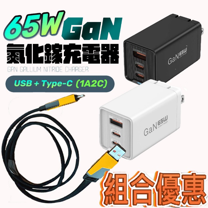 65W快充電源線+PD65W折疊腳充電器IC9+SU8多重保護 三孔輸出原價$1,299特價$599