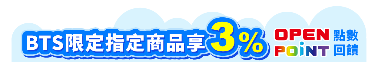 - OPENPOINT各項點數回饋方式:同筆訂單商品全數到貨後(扣除退貨),14天後給予點數。