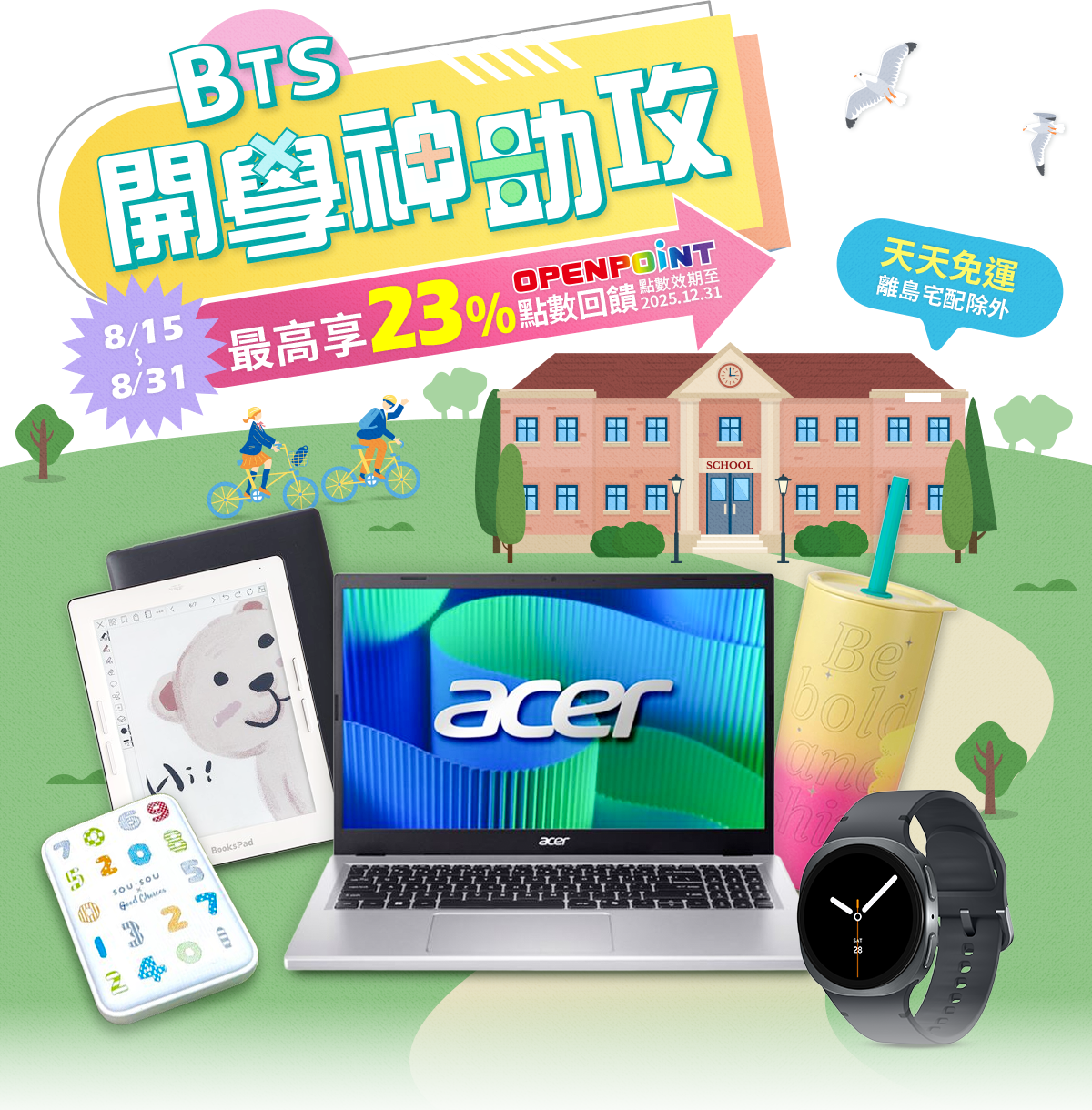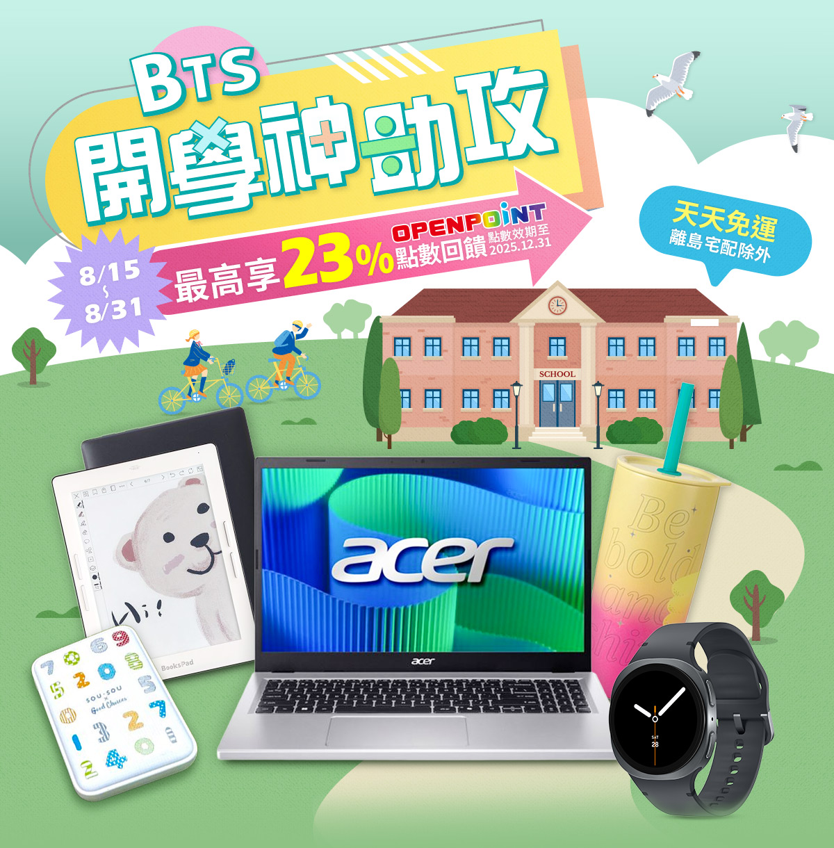 - OPENPOINT各項點數回饋方式:同筆訂單商品全數到貨後(扣除退貨),14天後給予點數。