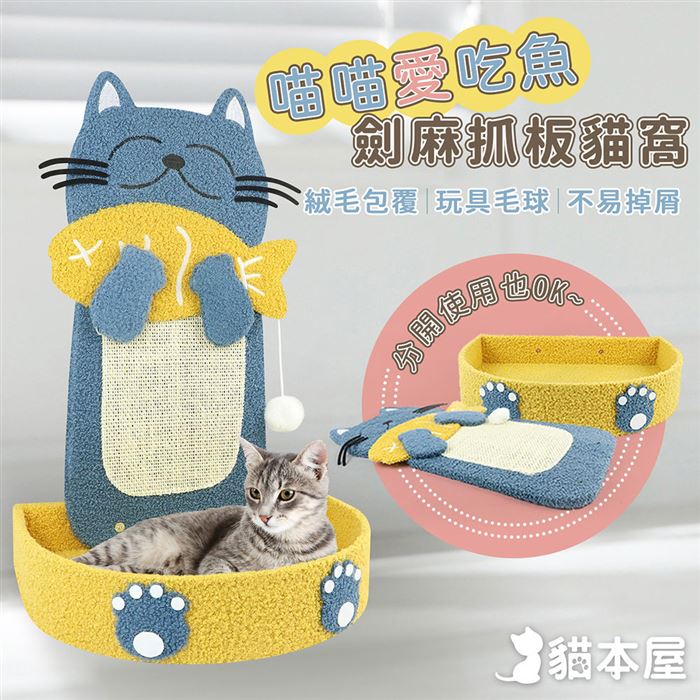 喵喵愛吃魚 立式L型 劍麻貓抓板貓窩(不掉屑)貓窩兼劍麻抓板設計原價$1480特價$499