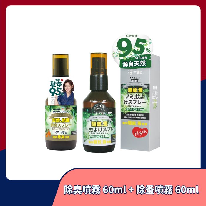 草本95寵物驅蚊蚤噴霧60ML+除臭噴霧60ML天然草本 有機認證原價$640特價$269
