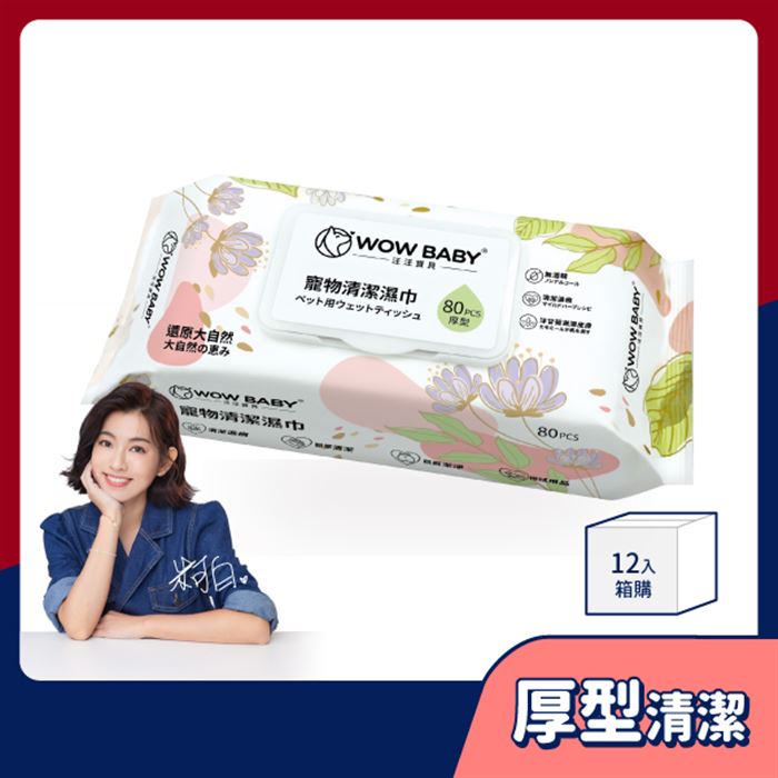 寵物厚型清潔濕巾80抽*12入加厚棉柔格紋布原價$1500特價$498