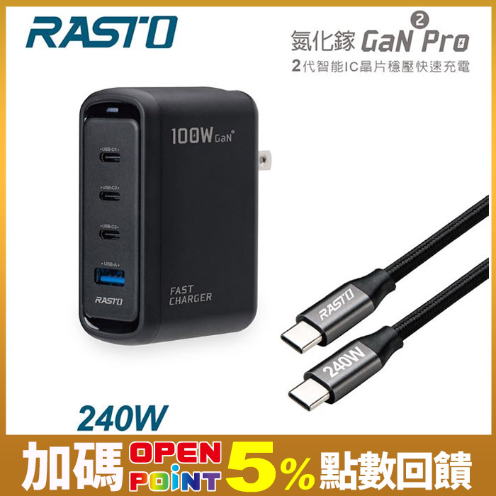 100W二代氮化鎵充電器+240W充電線組RB-53同時支援4項設備充電原價$1,880特價$1,111