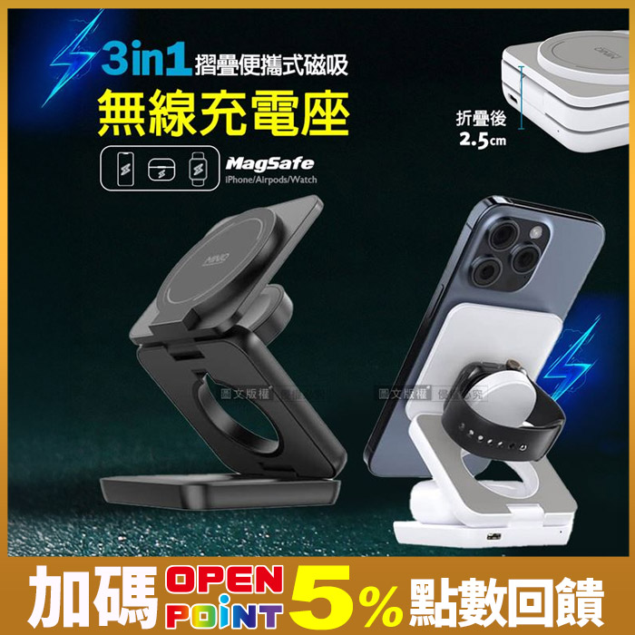 15W三合一折疊便攜式 磁吸無線充電座 充電器旅行必備 收折好攜帶原價$1,600特價$899