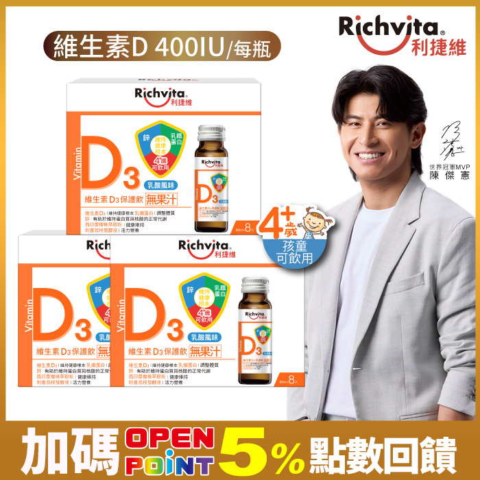維生素D3保護飲 8入組x3盒保護力罩得住原價$2,616特價$872