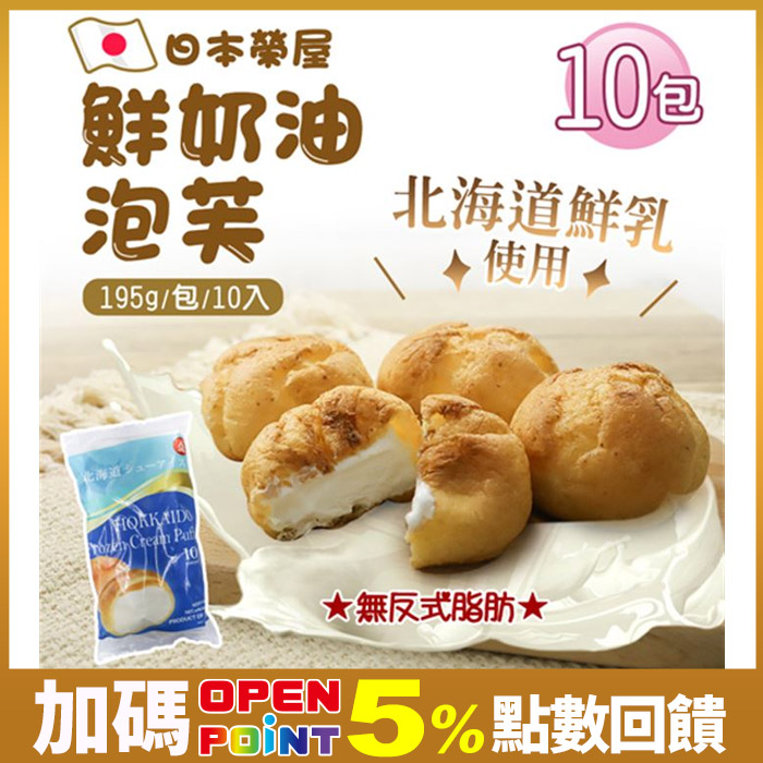榮屋鮮奶油泡芙(195g/包)*10包超值!!平均一包230元原價$3,285特價$2,300