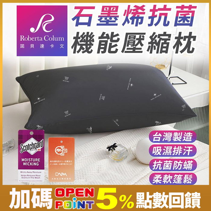石墨烯三效壓縮枕-可水洗吸濕排汗 柔軟蓬鬆原價$899特價$488