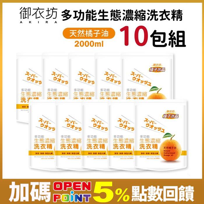 橘子水晶洗衣精2000ML-10包組平均一包$59元原價$990特價$590
