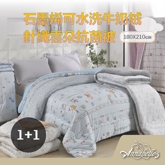 Annabelle石墨烯可水洗牛奶絨針織雲朵抗菌被(共5色)*贈品隨機買一送一 平均一件$850原價$5,960特價$1,699