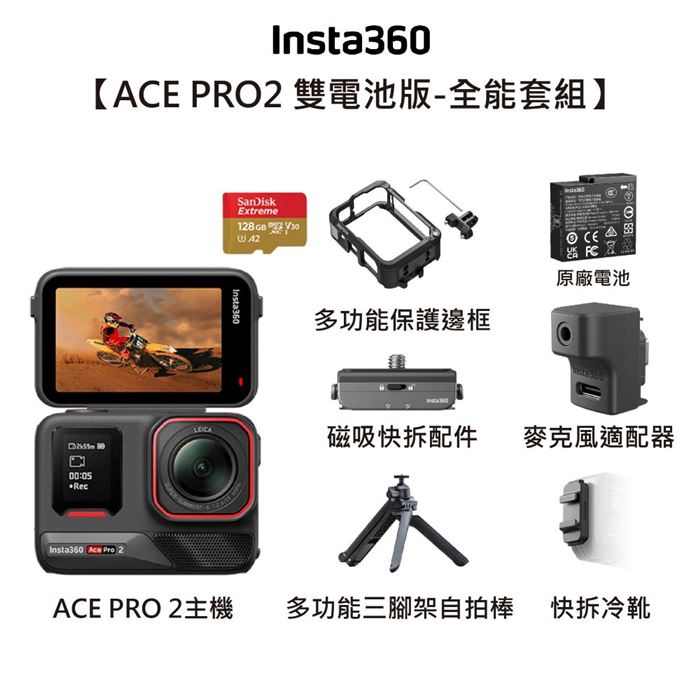ACE PRO2 運動相機 雙電池版 全能套裝AI雙核心 非凡畫質原價$23,913特價$22,690