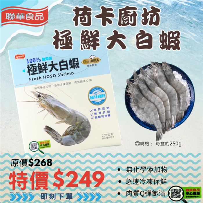 極鮮大白蝦 250gQ彈鮮甜 營養美味原價$268特價$249