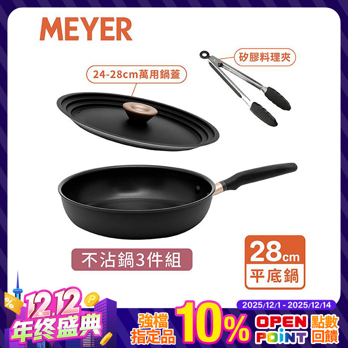 質感削光黑導磁不沾鍋3件組|平底鍋/鍋蓋/料理夾超值優惠鍋具組原價$3780特價$1690