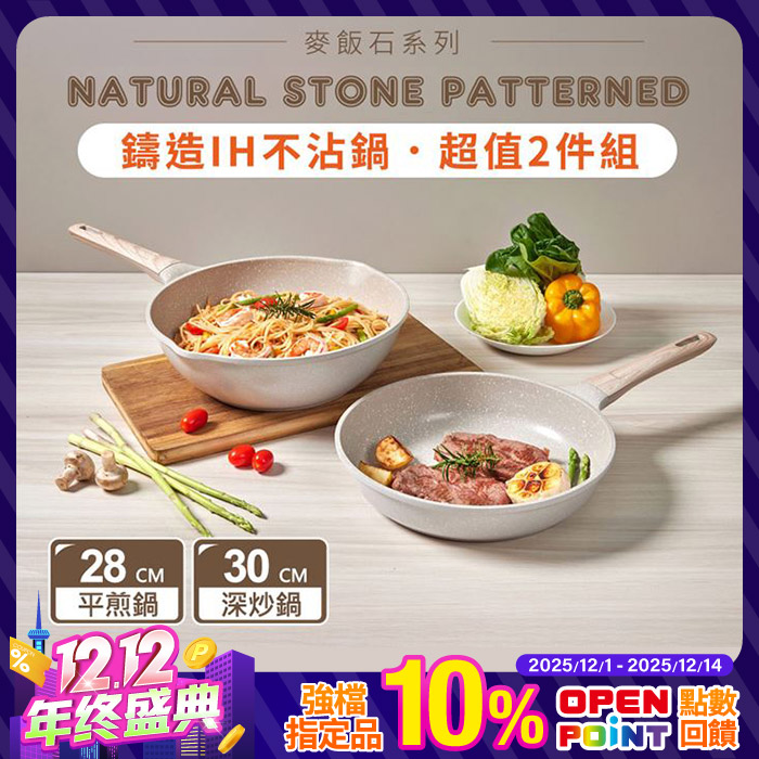 麥飯石鑄造IH不沾鍋28cm+30cm超值優惠鍋具組原價$3680特價$999