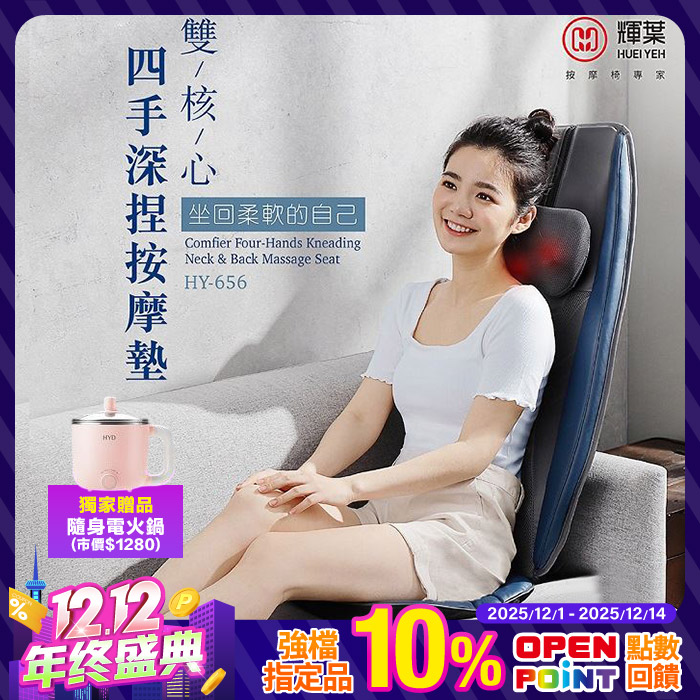 雙核心四手深捏按摩墊(HY-656)加贈料理電煮鍋原價$9280特價$6980