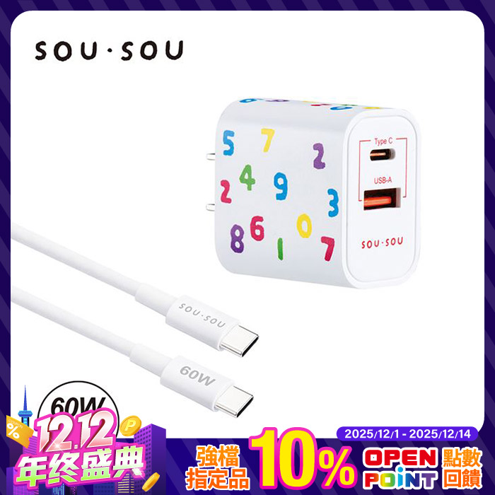 十數昆 25W氮化鎵GaN 1A1C + 60W C to C 快充傳輸線組全球電壓適用售價$590