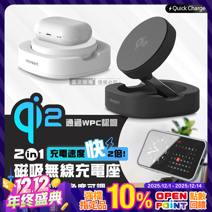 Qi2認證 急速15W二合一磁吸無線充電座磁吸快充效率升2倍原價$1500特價$1290