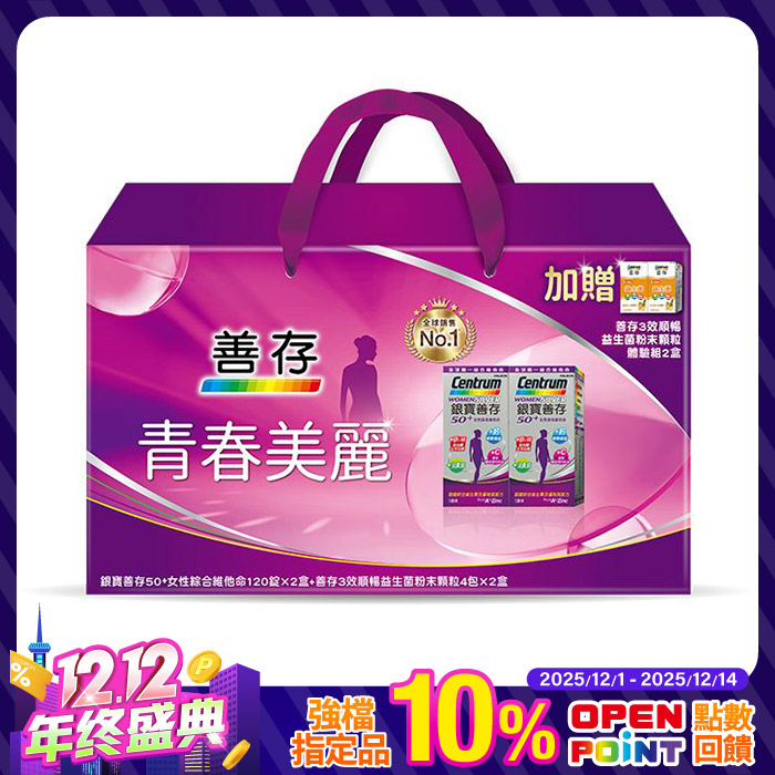 50+ 女性綜合維他命120錠x2+善存益生菌粉4包x2思緒清晰 青春美麗原價$2508特價$1350