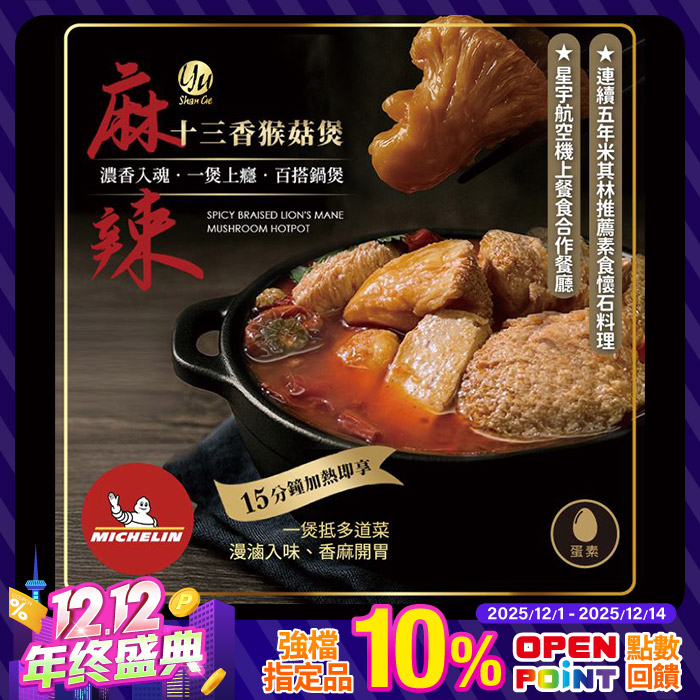 麻辣十三香猴菇煲750公克/包 (固形物450公克)星宇航空合作餐廳原價$458特價$399