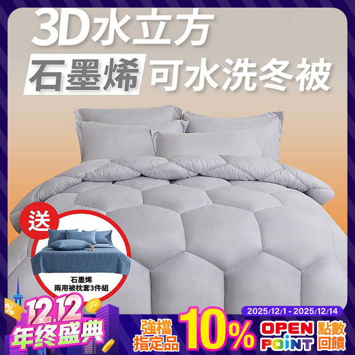 3D水立方石墨烯可水洗冬被(送石墨烯兩用被枕套3件組)買被送3件組原價$4960特價$812