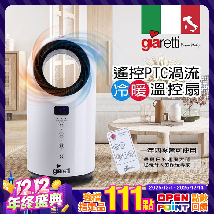 遙控PTC渦流冷暖溫控扇60度廣角送風原價$2480特價$1680