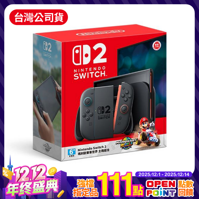 Switch 2 瑪利歐賽車世界 主機組合年終狂歡同樂必買售價$15580