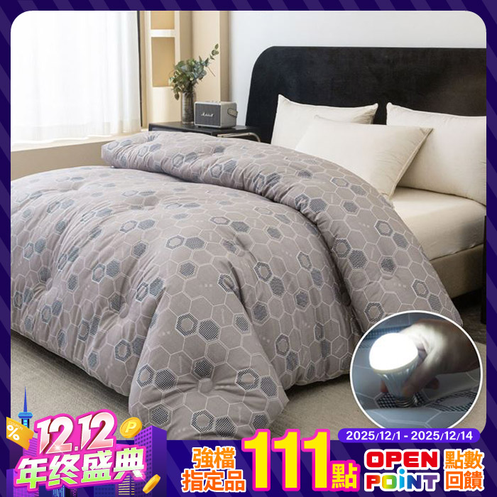 石墨烯發熱抗菌厚冬被-雙人(亮燈款)加贈限量毛巾$299原價$1390特價$990