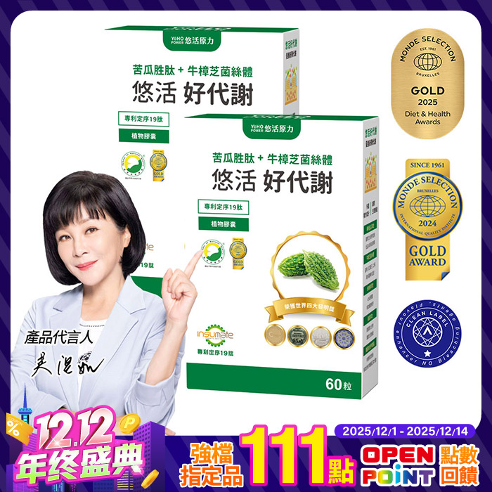 悠活好代謝 苦瓜胜肽+牛樟芝 (60粒X2盒)吳淡如好評推薦原價$5000特價$3112