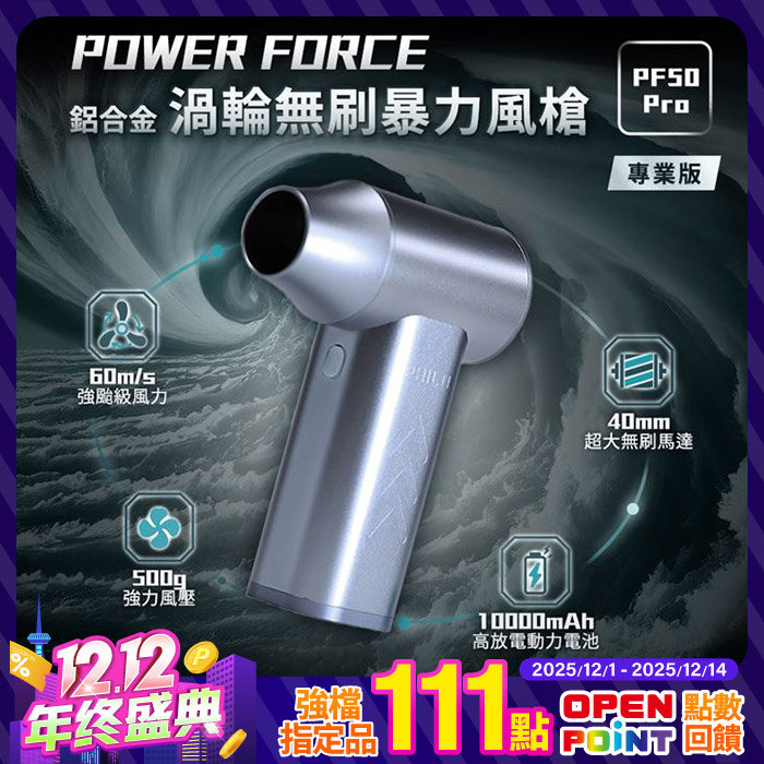 專業版|POWER FORCE 鋁合金 渦輪無刷暴力風槍PF50 Pro鋁合金機身原價$3980特價$2280