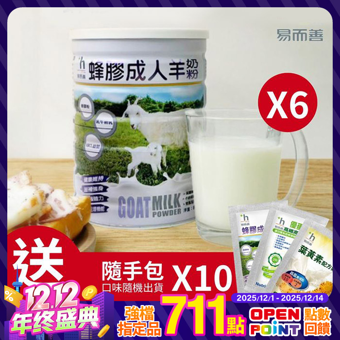 蜂膠成人羊奶粉-6罐+贈10包隨手包(隨機出貨)補充營養最佳選擇原價$5520特價$5099