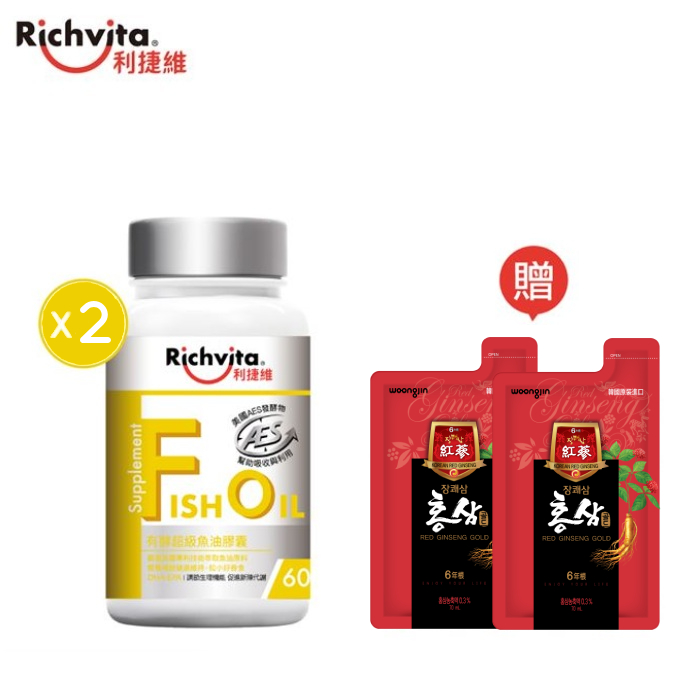 有酵超級魚油膠囊 60粒/瓶(共2瓶)+贈紅蔘飲2包再贈紅蔘飲2包原價$1500特價$750