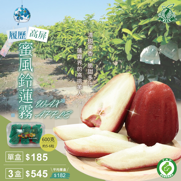 蜜風鈴蓮霧/5-6粒/600g/盒清甜飽滿多汁原價$222特價$185
