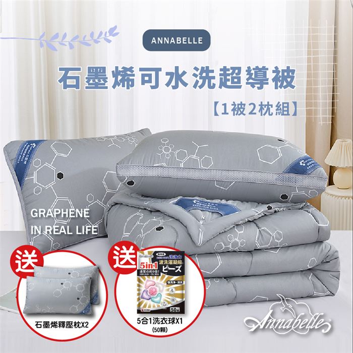 石墨烯可水洗超導被1被2枕組送5合1洗衣球50顆原價$4750特價$1058