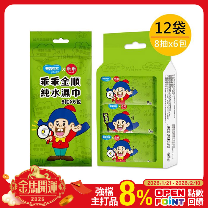 迷你包純水濕巾(8抽6入/袋)-12袋乖乖變身濕紙巾原價$828特價$708
