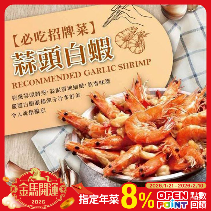 蒜頭白蝦365g汁多豐腴 鮮美熟蝦原價$400特價$350