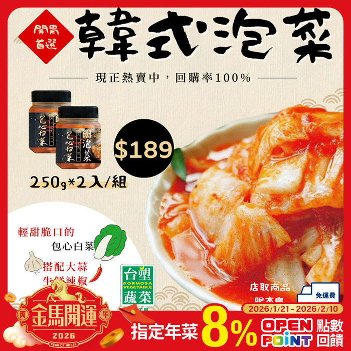 韓式包心白菜泡菜250g*2罐/組獨特酸辣味原價$199特價$189