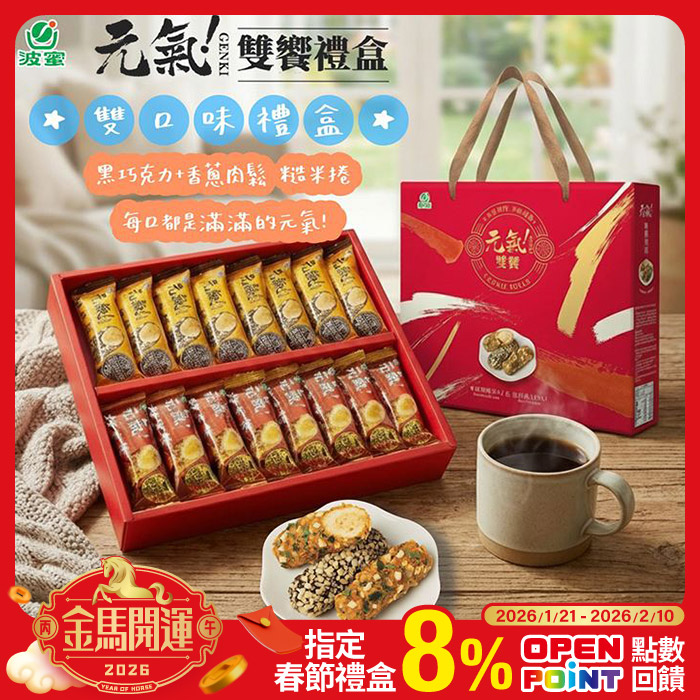 元氣雙響提繩禮盒16支/盒 (香蔥肉鬆+黑巧克力)有甜有鹹 幸福加倍原價$320特價$279