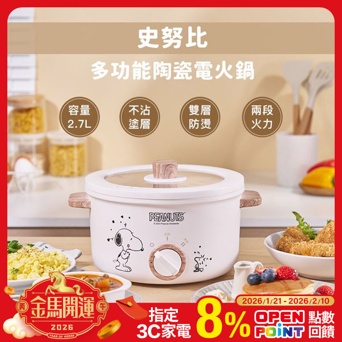 2.7L多功能陶瓷電火鍋陶瓷釉不沾塗層原價$1980特價$1049