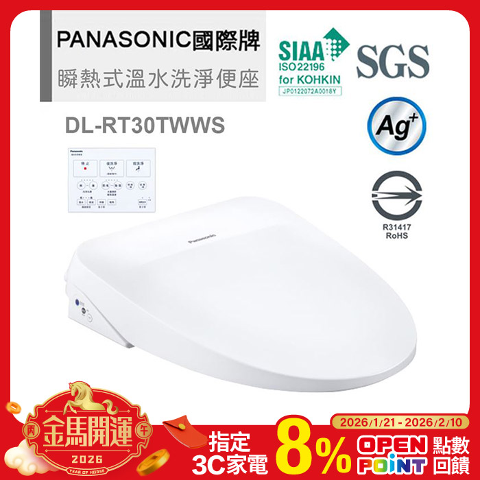 纖薄美型瞬熱式洗淨便座 DL-RT30TWWS泡沫洗淨原價$19900特價$17900