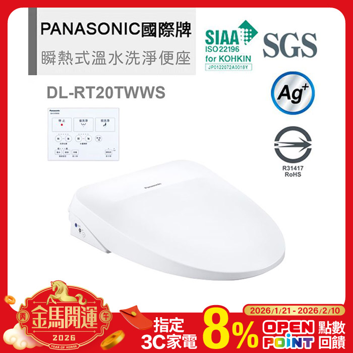 纖薄美型瞬熱式洗淨便座 DL-RT20TWWS薄型化機身原價$17900特價$15900
