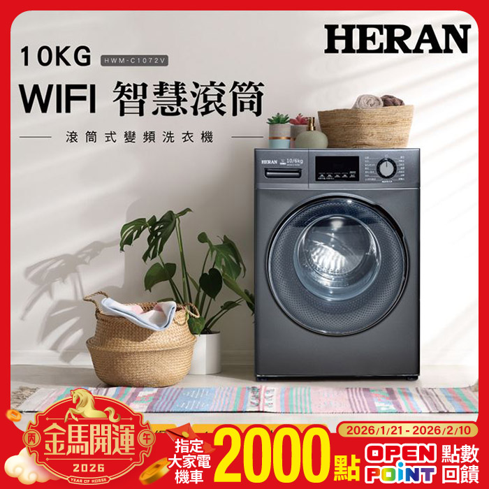 10KG變頻 WIFI智慧洗脫烘滾筒洗衣機 HWM-C1072V遠端控制原價$15900特價$13900