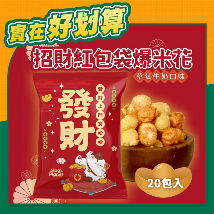 發財紅包袋爆米花-草莓牛奶口味18g/包平均每包40元原價$1000特價$799